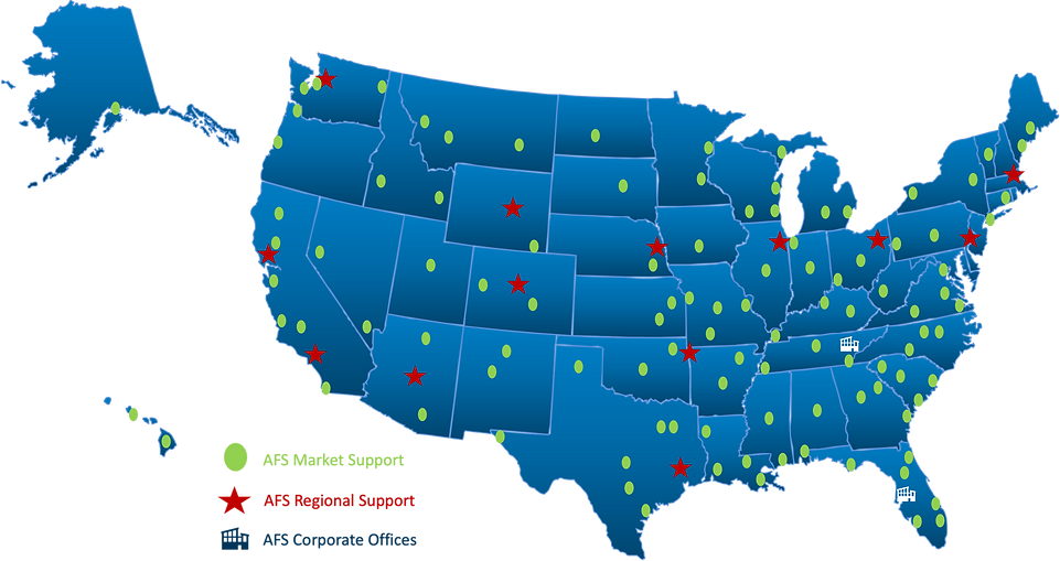 AFS’ National Footprint allows us to better serve our clients across multiple markets, whether regional or national.
